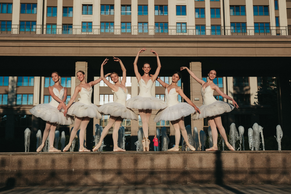 Магия момента была осязаемой: когда хрупкие танцовщицы в молочно-белых пачках заворожили зрителей классическим адажио на гранитной прогулочной колоннаде дома «Нобель», реальность словно растворилась. Жители дома и почетные гости застыли в немом восхищении, созерцая, как грациозная хореография гармонично сплетается с монументальными контурами архитектуры в стиле ар-деко.