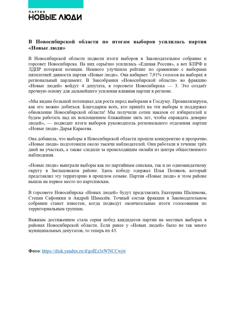 Важным достижением стала серия побед кандидатов партии на местных выборах в районах Новосибирской области. Если ранее у «Новых людей» было не так много муниципальных депутатов, то теперь их 43.